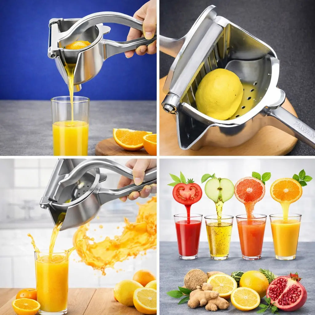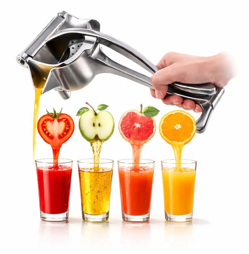 Con el Exprimidor Profesional de Presión en Acero Inoxidable, solo tienes que colocar la fruta y presionar.